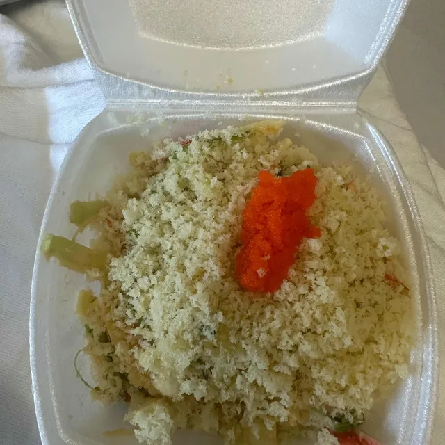 cucumber, crab meat, seaweed salad, mixed with crunch and spicy mayo, topped with masago.